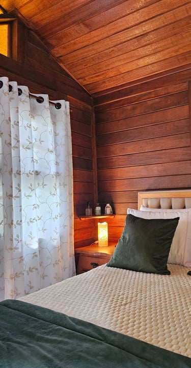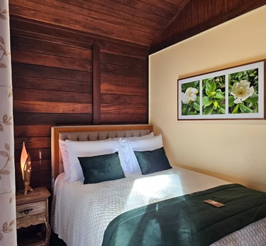 Upon entering the Lavender-themed Cabin, its gentle aroma awakens the senses and invites relaxation. The natural fragrance fills the environment with a sense of peace and well-being.